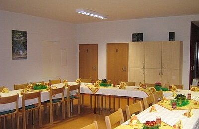 Die Zachsdorfer Unterkirche besteht aus einen grossem Raum inkl. Küche, der regelmäßig vermietet wird. Dieser Gemeinderaum wurde im Jahr 2005 komplett renoviert und bietet für Gemeindeveranstaltungen und auch für private Feierlichkeiten einen feierlichen Rahmen. Die Unterkirche verfügt über 70 Sitzplätze und mit einer Küche, die mit einem Herd, einer Spülmaschine, einer Kaffeemaschine und einem Kühlschrank ausgestattet ist. Geschirr, Besteck und Handtücher befinden sich dort in den Schränken. Die Miete beträgt € 120. Anfragen bitte an das Pfarramt 06332 5757.