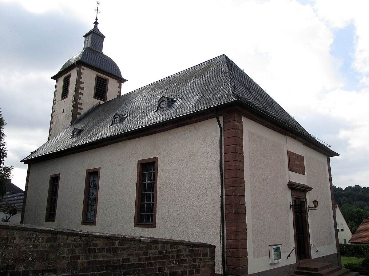 Der Turm und der Chor sind uralte Reste einer im 30-jährigen Krieg zerstörten Kirche. Nach dem Krieg wurde sie wieder neu erbaut und 1689 unter Frankreichs Schutz Simultankirche. Wegen Baufälligkeit mußte sie 1784 wieder abgerissen werden.