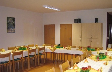 Die Zachsdorfer Unterkirche besteht aus einen grossem Raum inkl. Küche, der regelmäßig vermietet wird. Dieser Gemeinderaum wurde im Jahr 2005 komplett renoviert und bietet für Gemeindeveranstaltungen und auch für private Feierlichkeiten einen feierlichen Rahmen. Die Unterkirche verfügt über 70 Sitzplätze und mit einer Küche, die mit einem Herd, einer Spülmaschine, einer Kaffeemaschine und einem Kühlschrank ausgestattet ist. Geschirr, Besteck und Handtücher befinden sich dort in den Schränken. Die Miete beträgt € 120. Anfragen bitte an das Pfarramt 06332 5757.